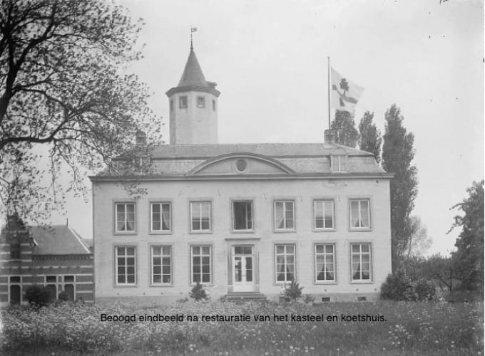 Het huis is in een U-vorm gebouwd, maar bij verbouwingen in de 19e eeuw kreeg het een rechthoekige vorm doordat de ruimte tussen de twee vleugels opgevuld werd met een lagere bouw. Hierbij is de oude vorm zichtbaar gebleven. Tevens verplaatste men de toegang naar de achtergevel en kreeg deze nieuwe vensters een segmentvormig fronton. Van de oorspronkelijke bouw is eigenlijk alleen nog maar het slanke achthoekige torentje over dat nog steeds fier boven het gebouw uitsteekt. Het muurwerk is uitgevoerd met mergelstenen banden. In de tuin staat een neogotisch koetshuis, gebouwd in 1904.