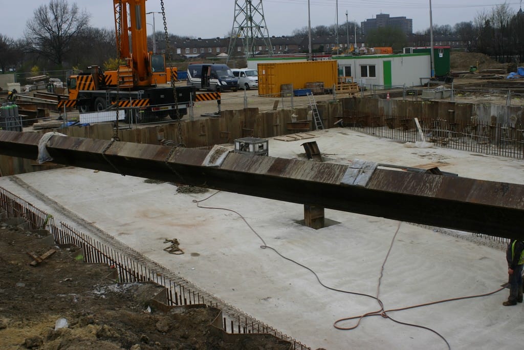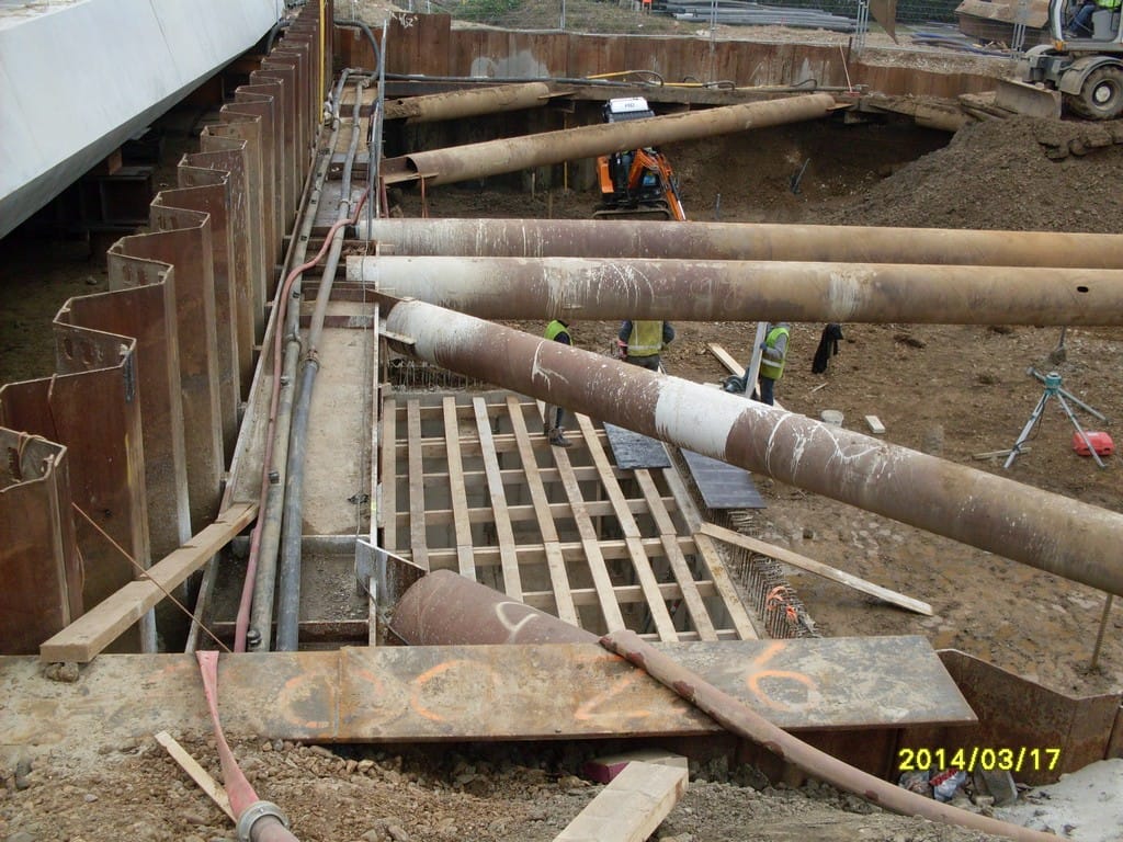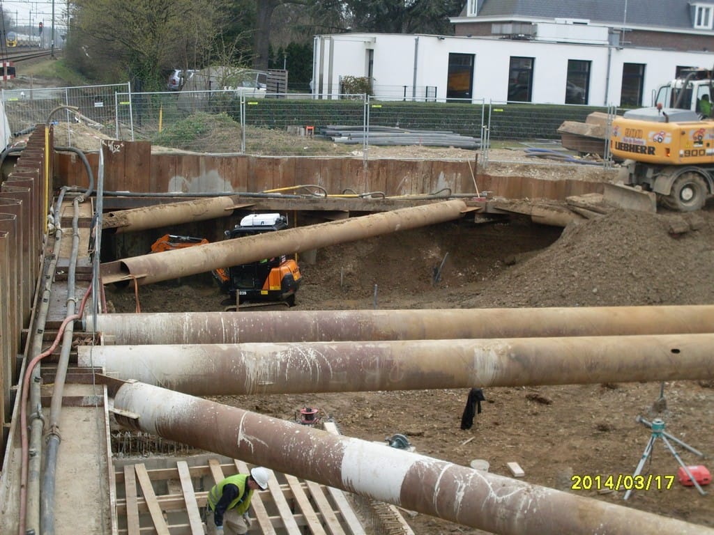 Van Trudy Hardy hebben we op 17 maart weer een aantal foto’s gekregen over de vorderingen van de werkzaamheden aan de tunnel en de hoogspanningsdraden. De betonelementen voor het dak van de tunnel zijn inmiddels op hun plaats. Per element zijn weer twee sporen aangelegd, zodat de 4 treinsporen weer ter beschikking zijn. Momenteel is men bezig met toekomstige tunnelbodem aan weerszijden van het spoor. Als u rechts op onze startpagina op de categorie Tunnel klikt, kunt u de achtereenvolgende afleveringen bekijken.